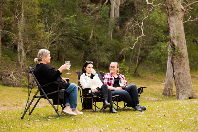 Relax in comfort with this two-person fully padded camping chair! Features dual insulated cup holders, side organisers, and a sturdy low-seating position.