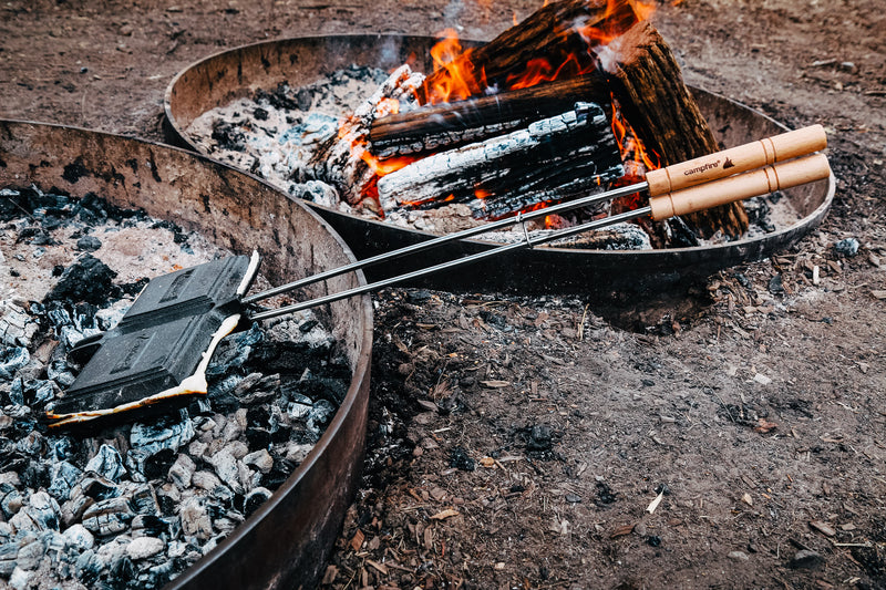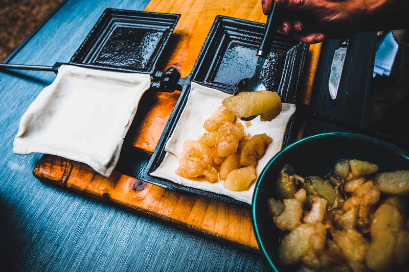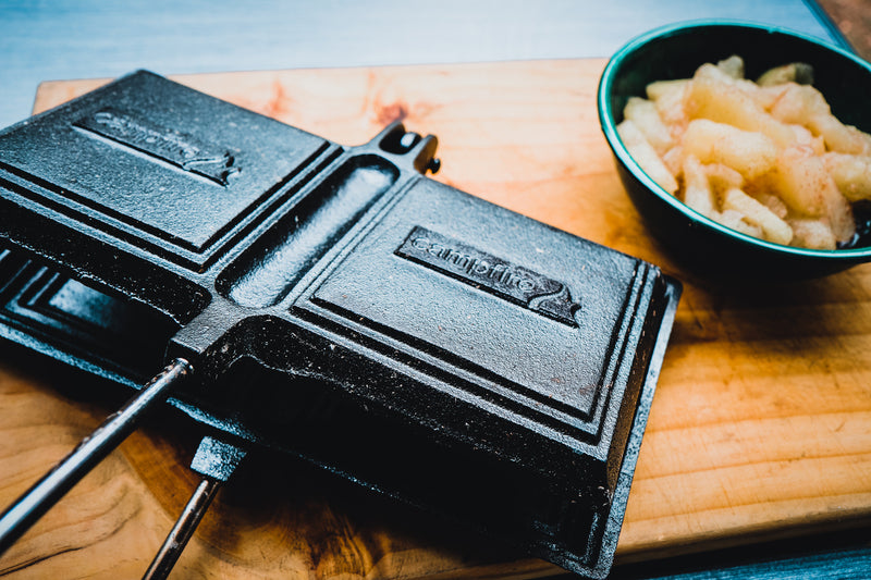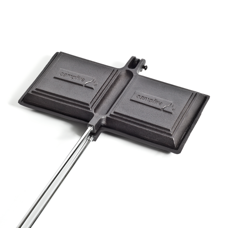 Create delicious toasted sandwiches with this jumbo double jaffle iron. Featuring a removable wooden handle for easy storage, it is made from long-lasting, pre-seasoned cast iron for durability.