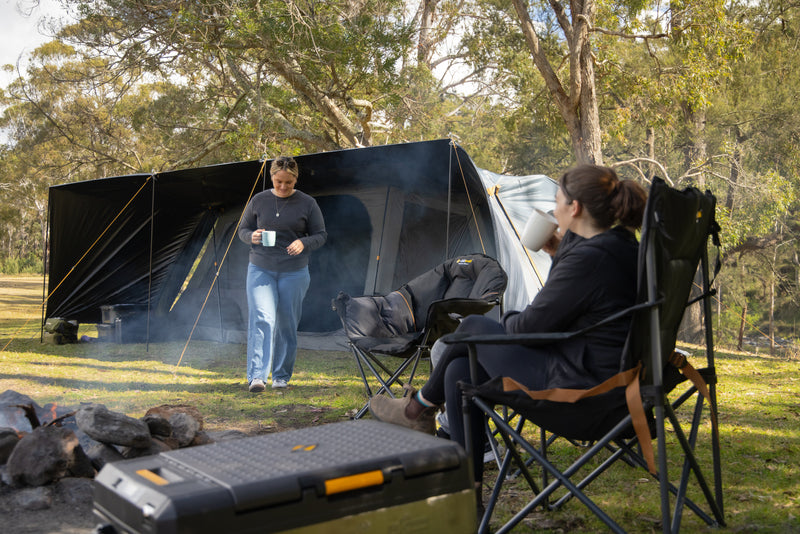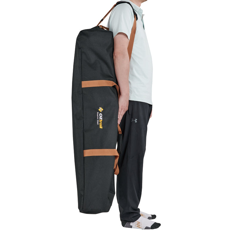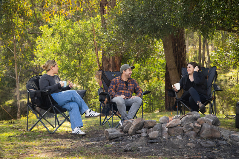 Relax outdoors with the Oztrail Roamer Chair! Sturdy steel frame, padded seat, and built-in drink holder for ultimate comfort.